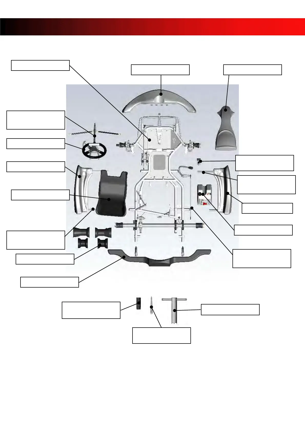 Prior to assembling your kart, check the above described elements and familiarize yourself