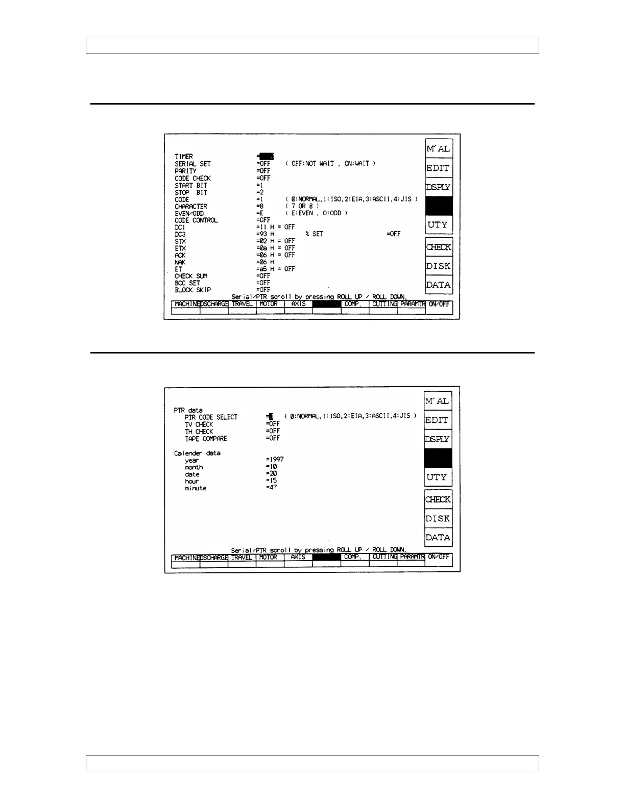 This is the calendar screen. Please set up the correct parameters on your machine.