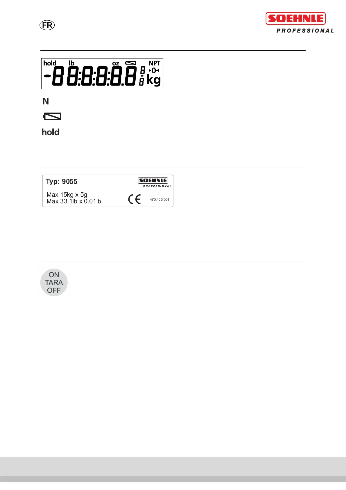 Touche ON/TARA/OFF pour le démarrage et l'arrêt de la balance et pour le