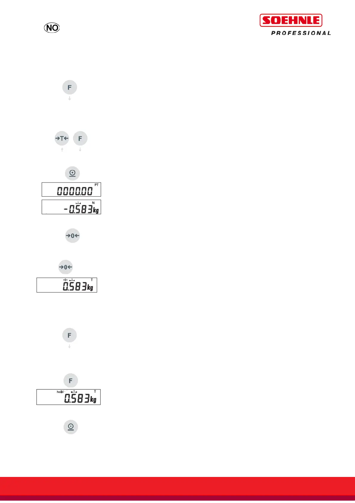 Ved et kort trykk slettes taravekten, ved langt trykk til vektindikeringen