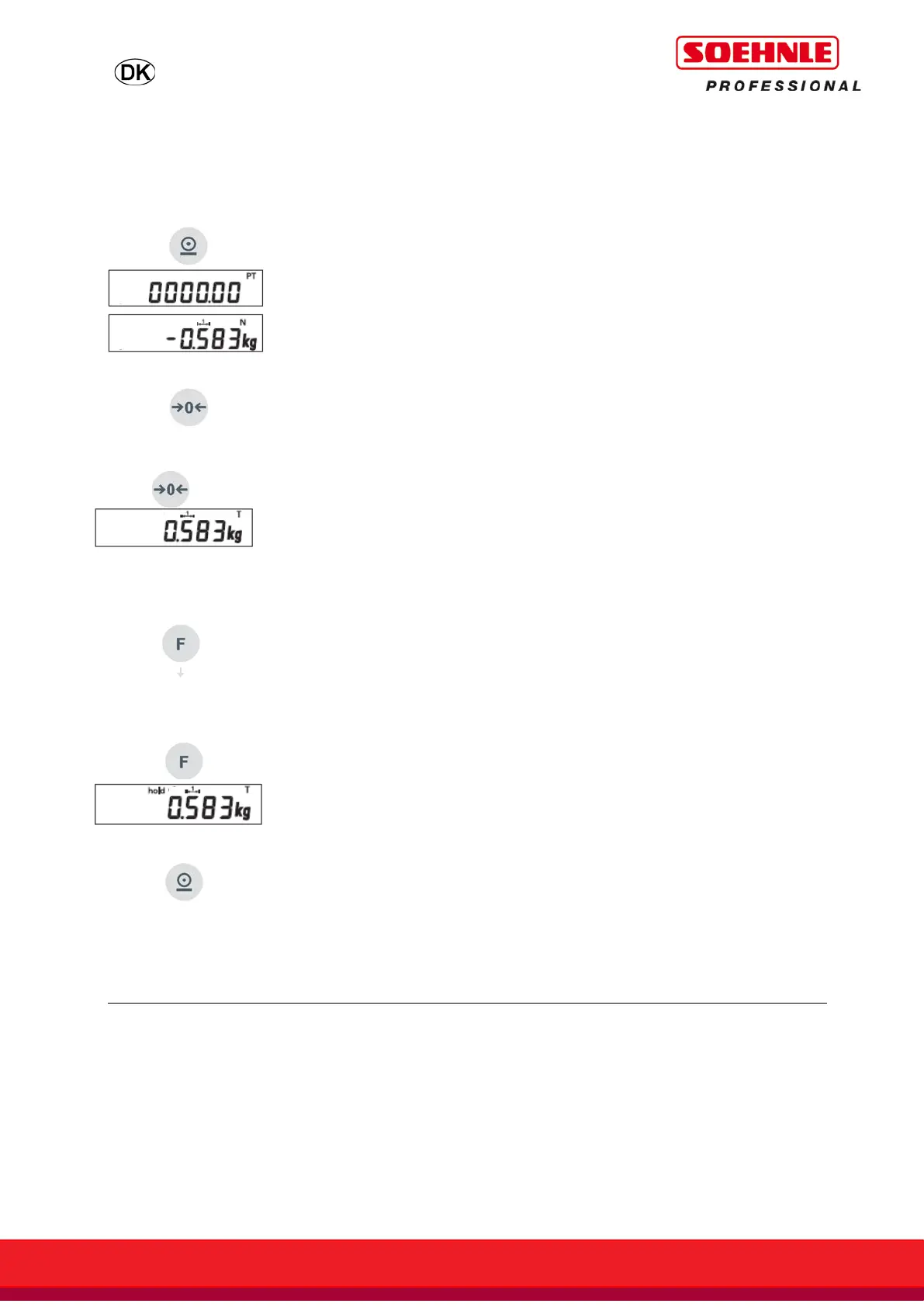 Med et kort tryk bliver taravægten slettet, med et langt tryk indtil