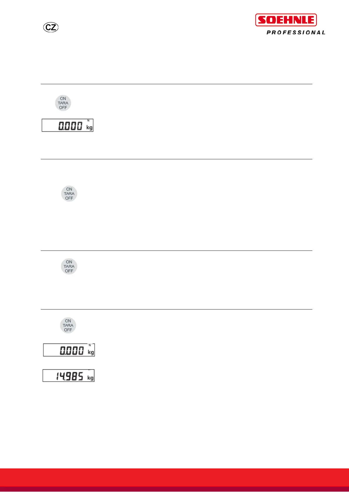 Stiskněte tlačítko ON/TARA/OFF pro korekci malých odchylek od nuly,
