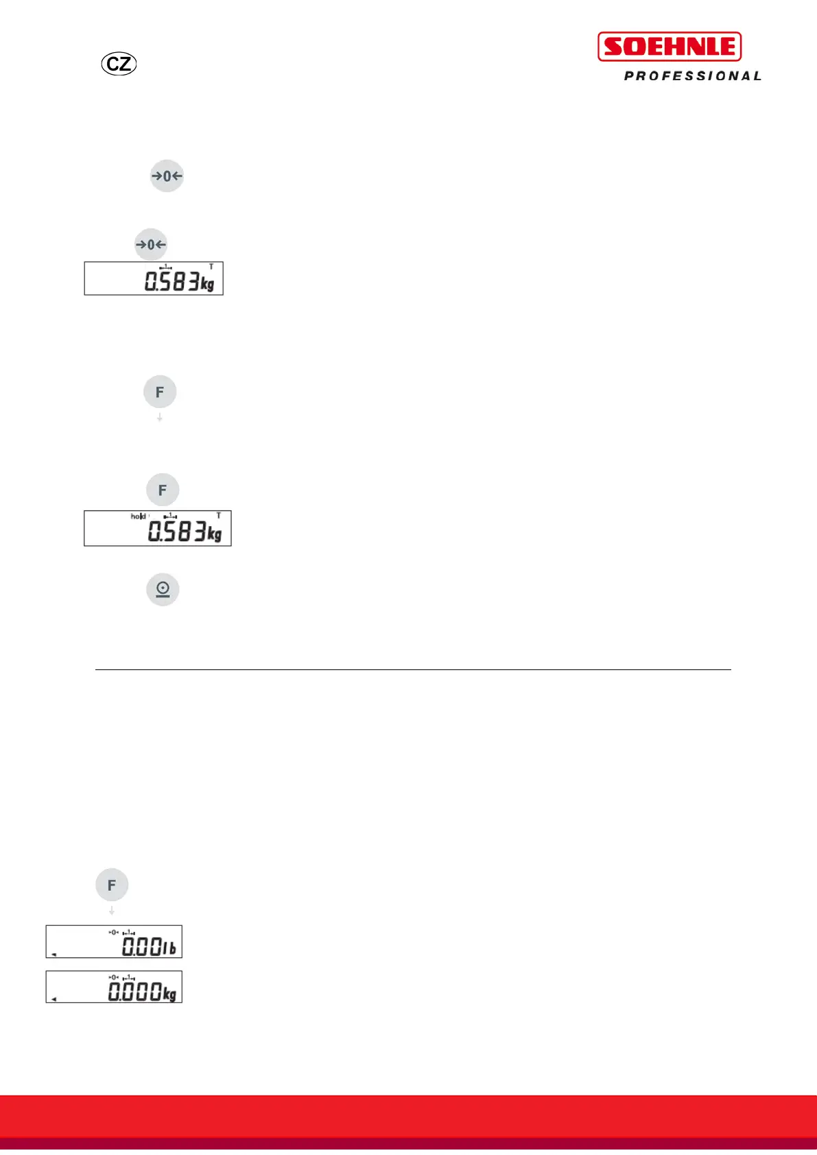 Stisknete-li tlačítko krátce, bude hmotnost táry smazána. Stisknete-li a