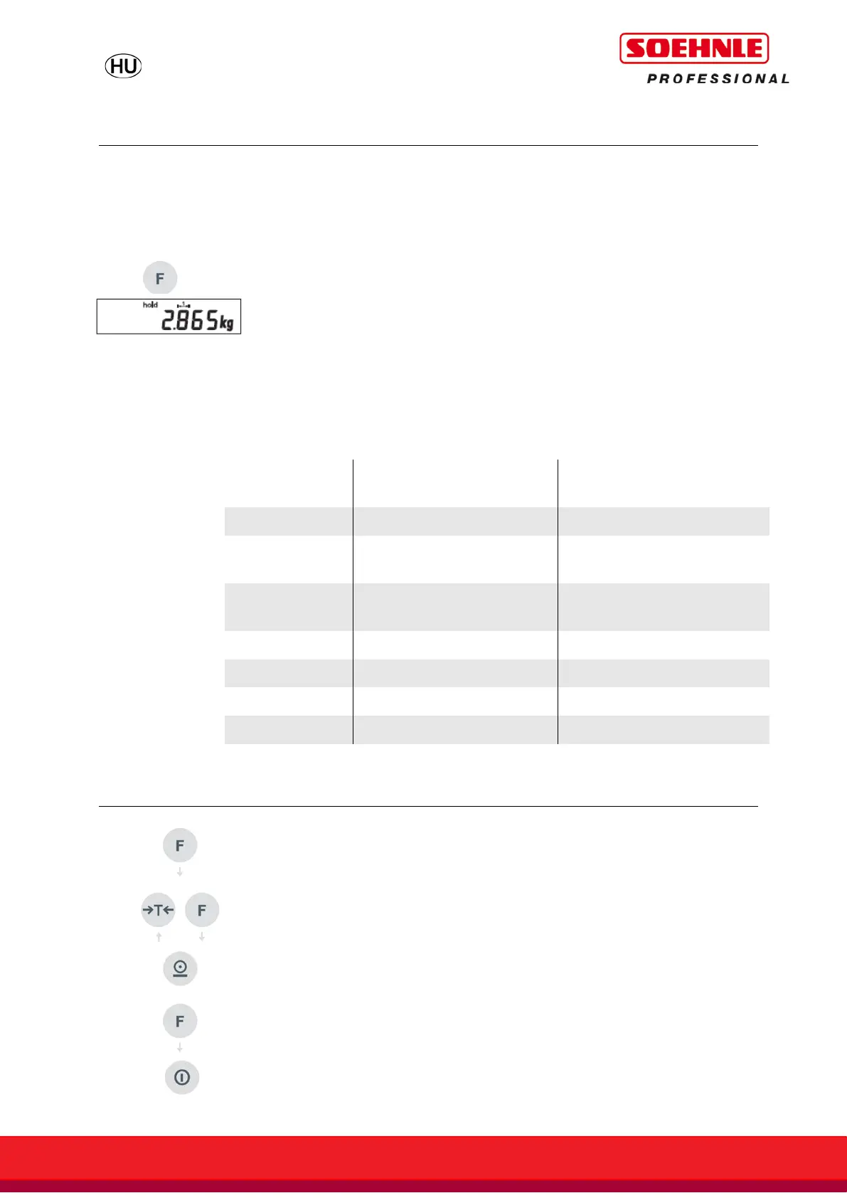 A súlyadatok befagyasztásához a következő tartásfunkciók állnak