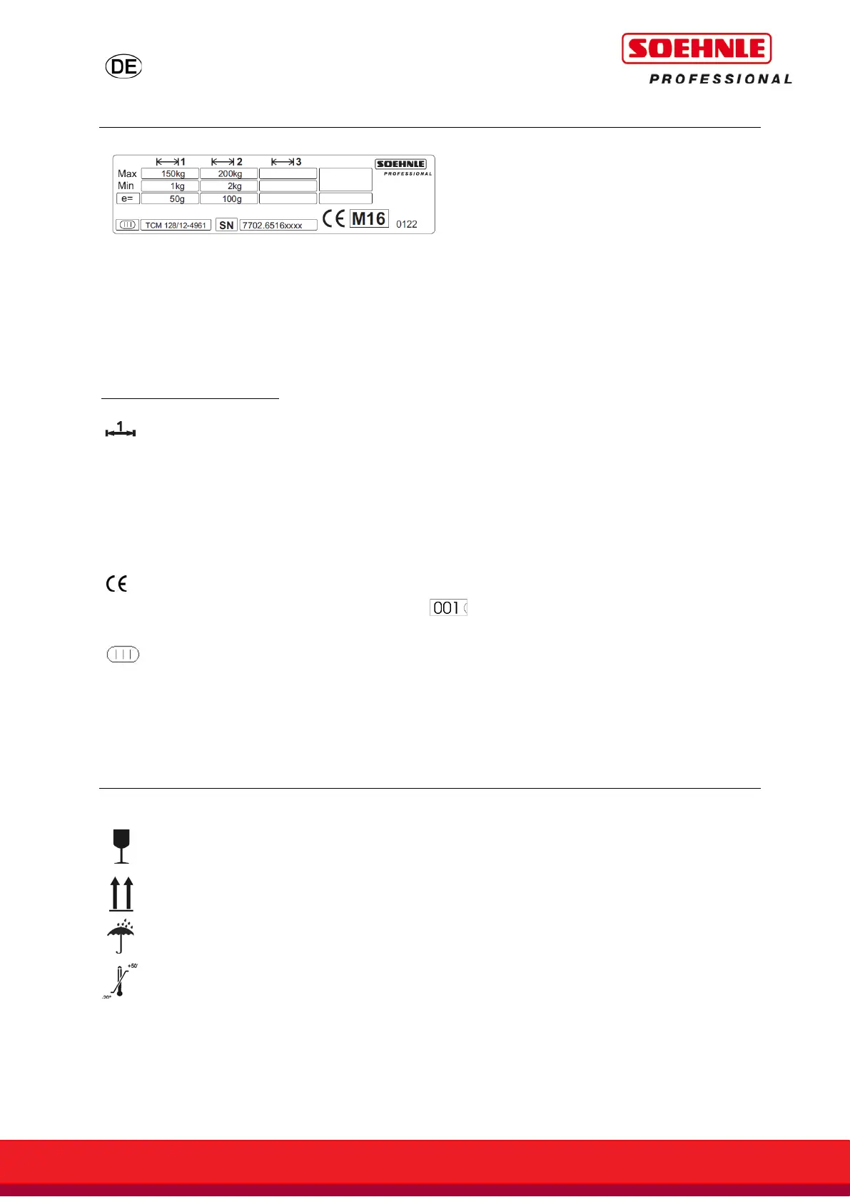 Multifunktionswaage 7708: Max: 300 kg, Min 2 kg, e = 100 g