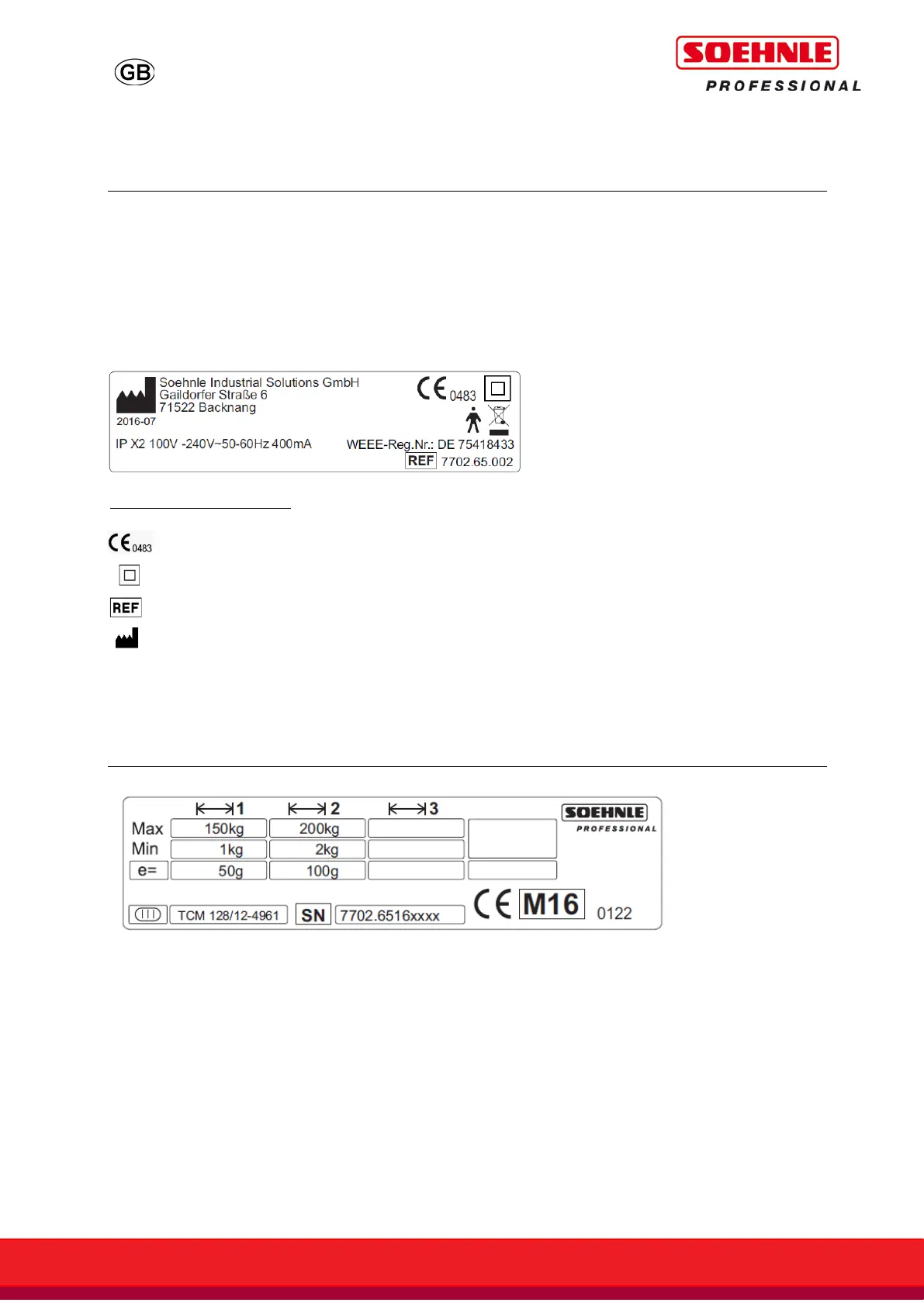 Invalid chair scales 7702: Max: 150 kg / 200 kg, Min 1 kg / 2 kg, e = 50 g / 100 g