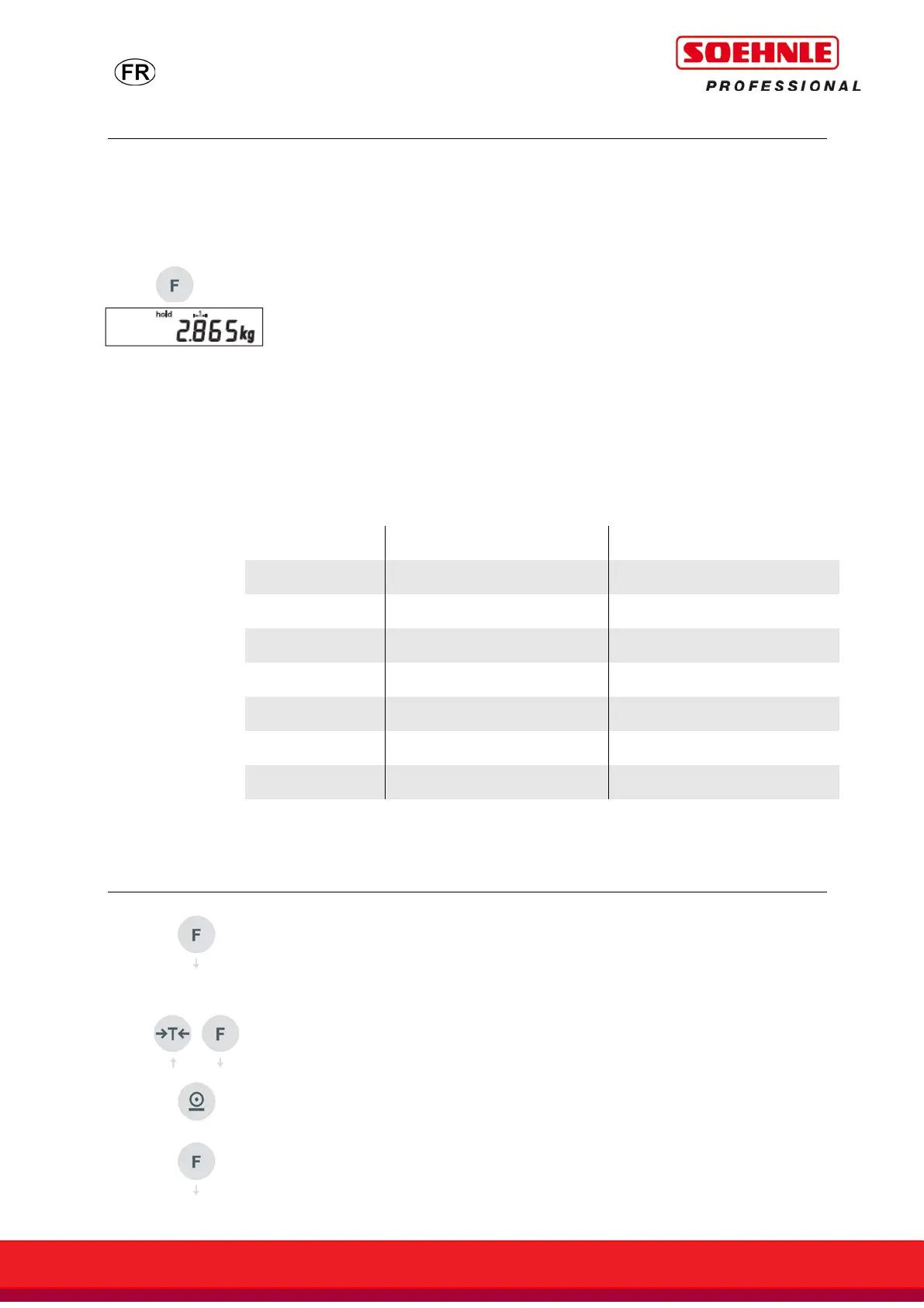 En mode pesage, la fonction hold est activée en appuyant sur la touche