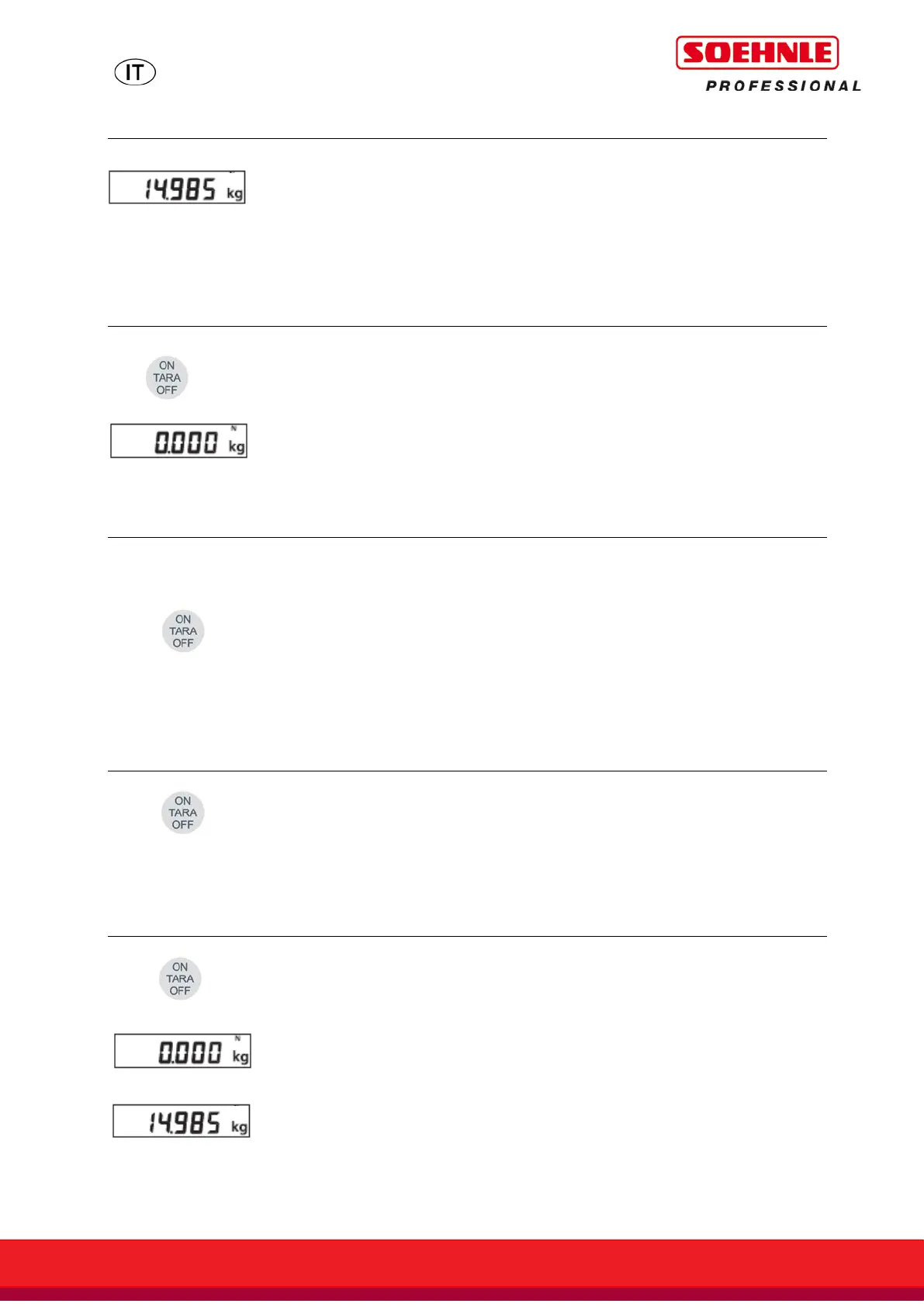 Possibilità immediata quando la bilancia è vuota e l'indicatore del peso