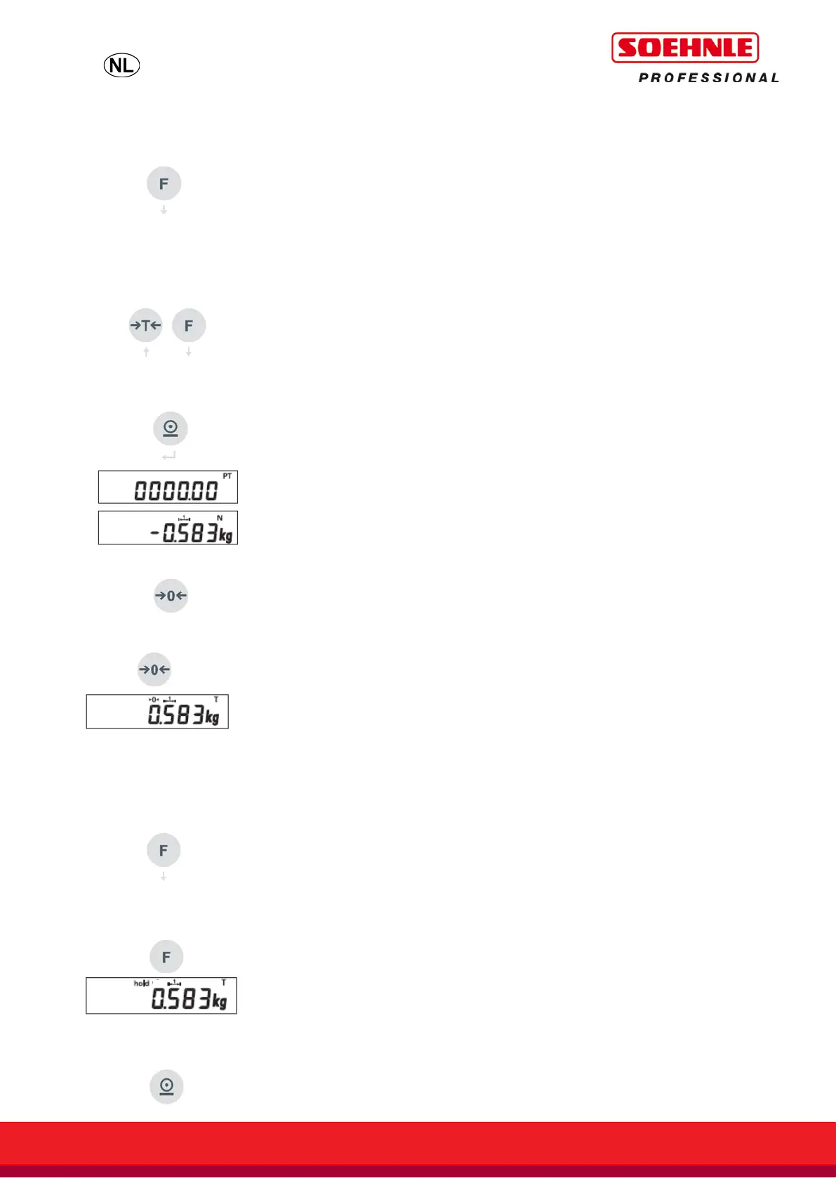 Bij kort indrukken wordt het tarragewicht gewist. Bij lang indrukken tot