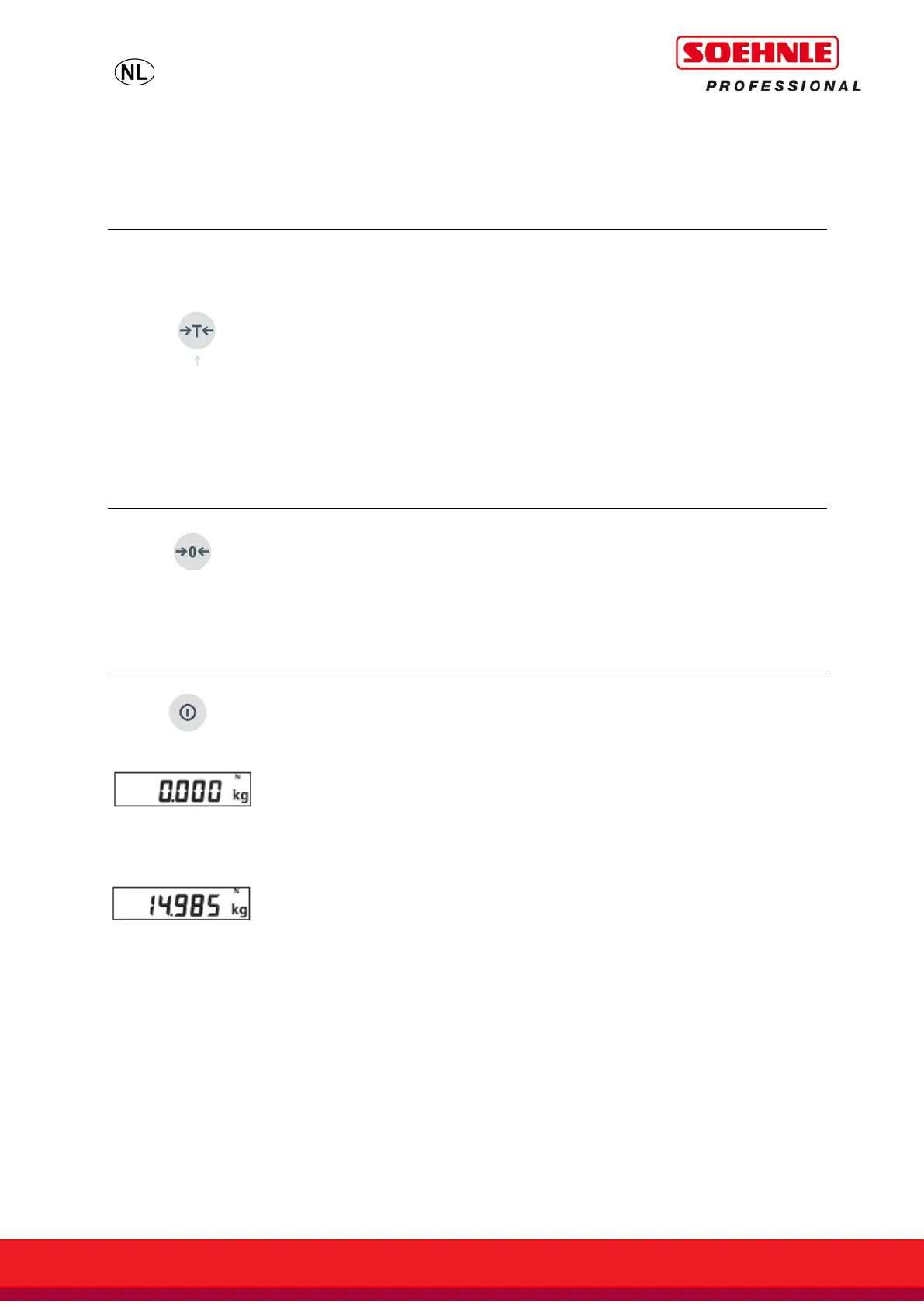 Als op het display »0,0 kg«verschijnt, schakelt de weger automatisch na een vooraf ingesteld