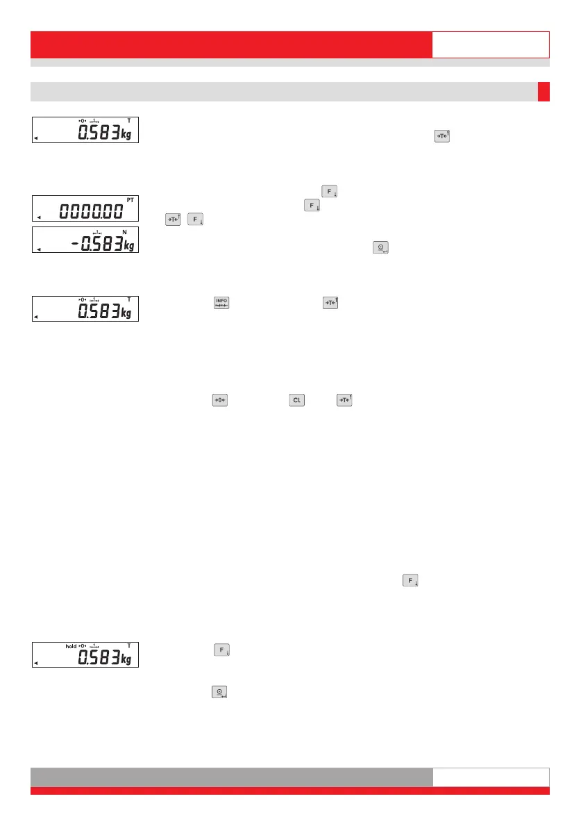 Press the -key to accept the new tare value.