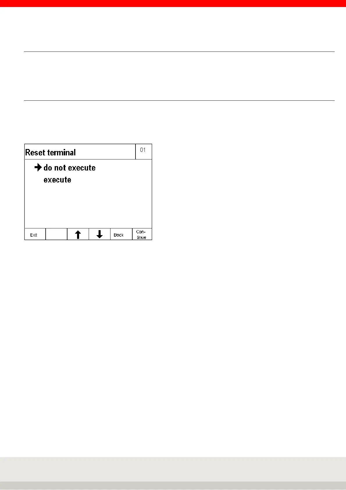 you can perform a reset of the terminal with the selection in the Setting mode / Terminal / Reset Terminal
