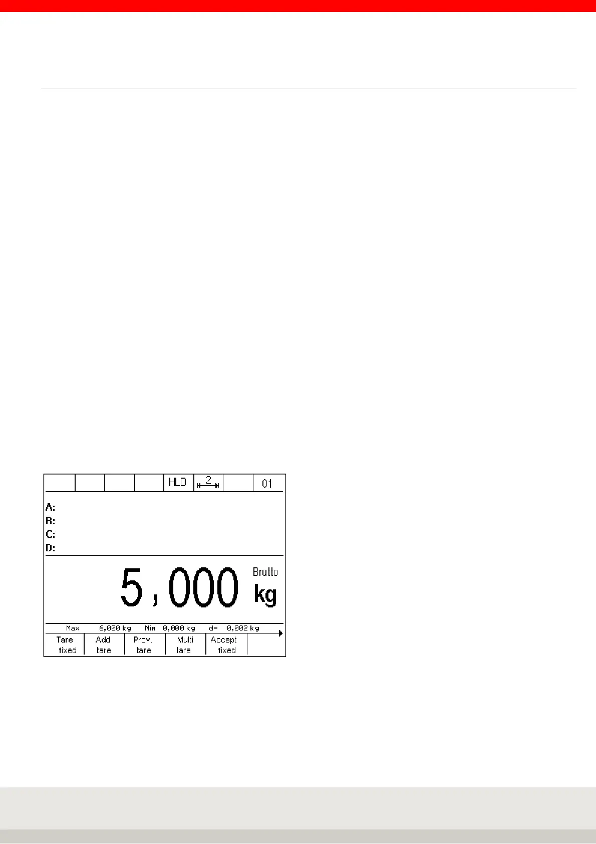 When the hold function is activated, holding a weight value in the toolbar is indicated by the HLD symbol in