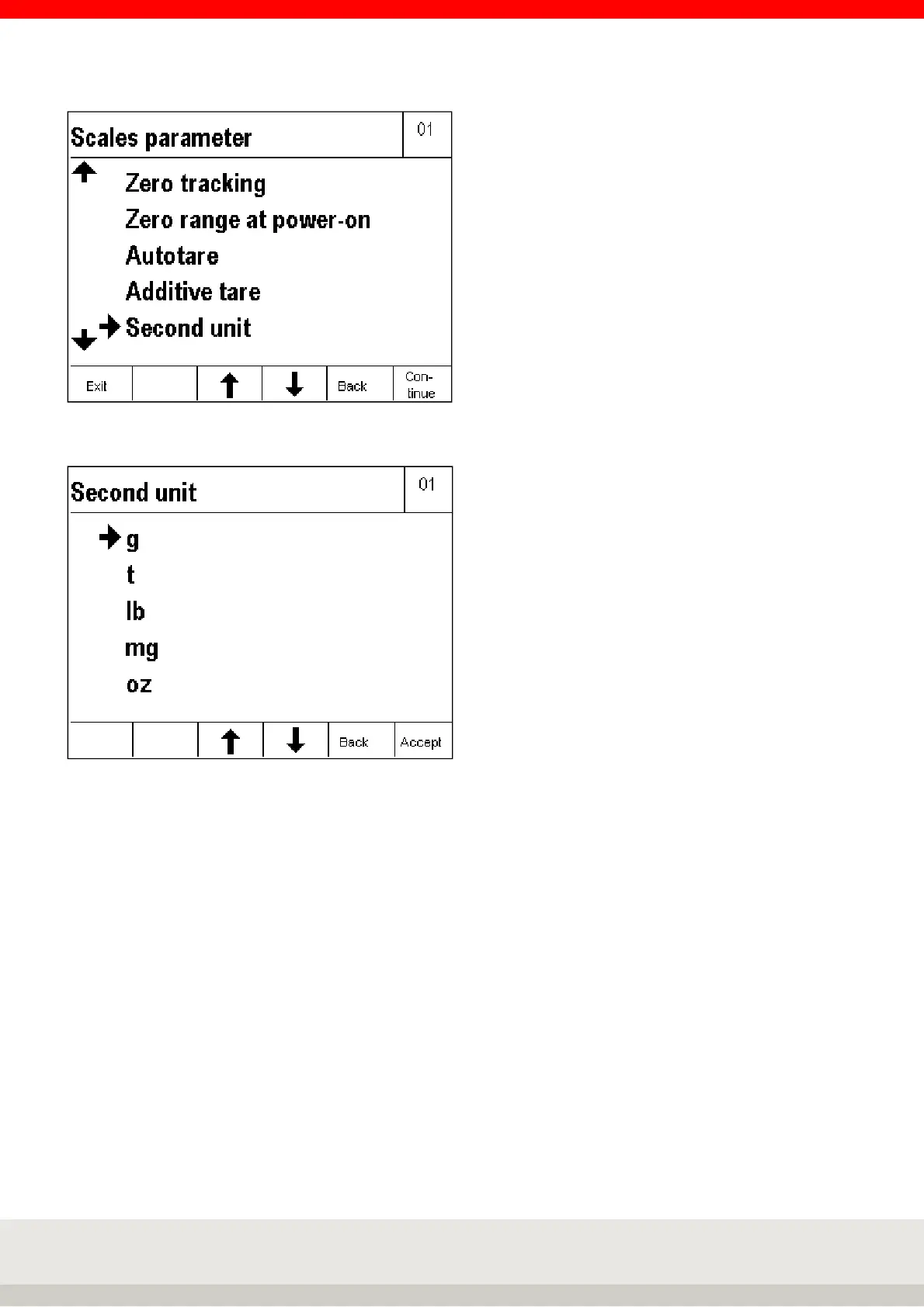 After selecting the second unit, press F1 "End" to return to the weighing mode.