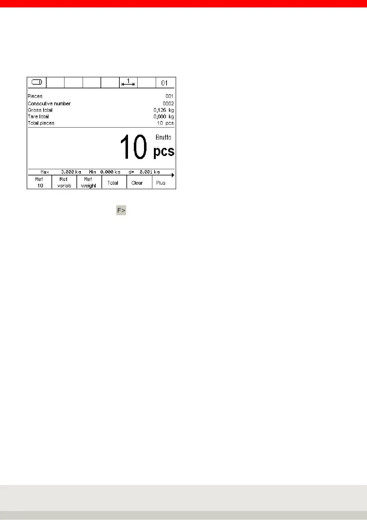 Press the Plus key to transfer the weight on the weighing platform to the totalising memory. The