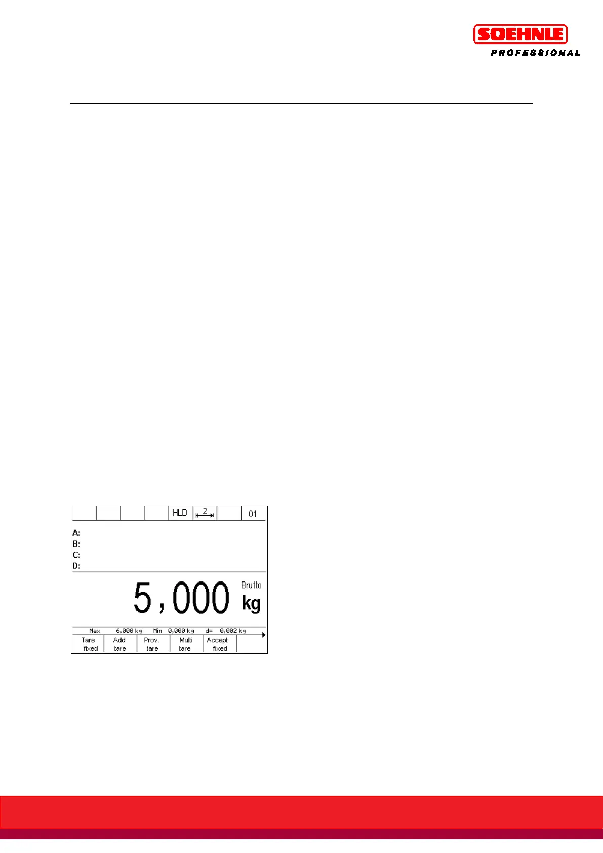 When the hold function is enabled, the holding of a weight value is indicated by the HLD symbol in