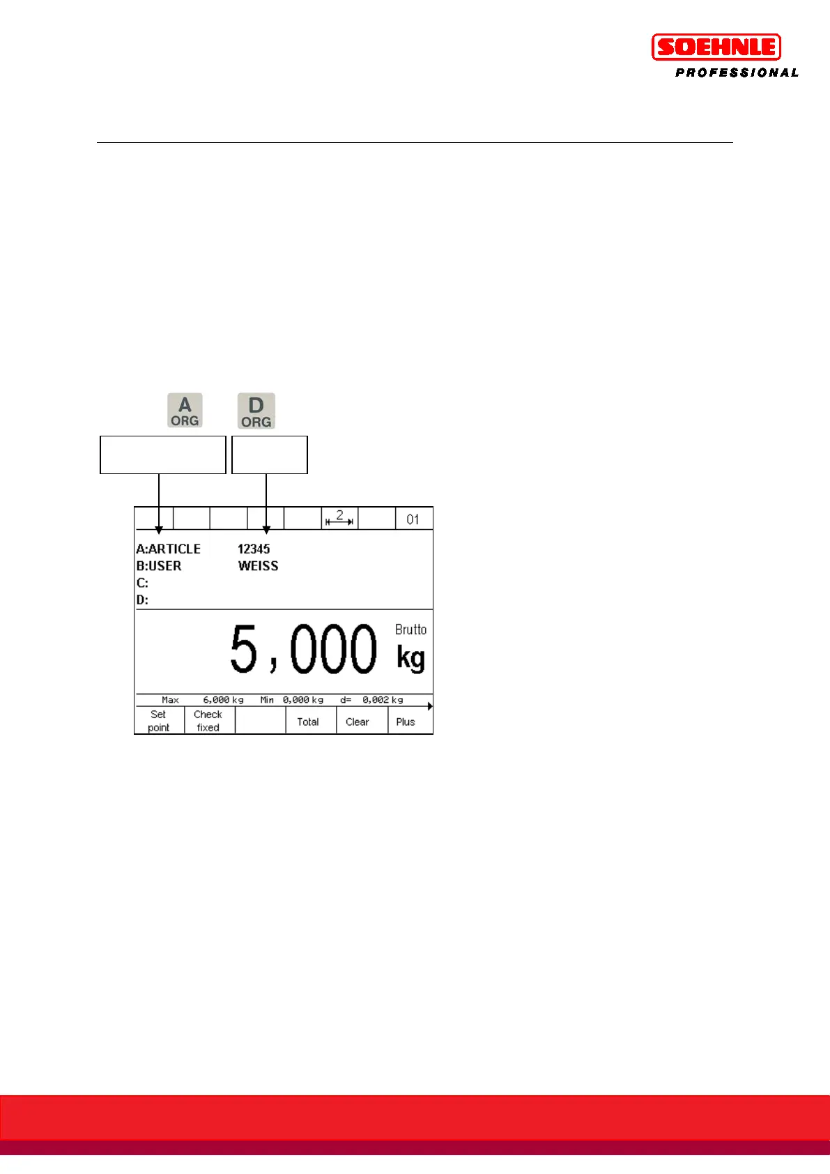 The name is entered in setup mode; the content is entered with each weighing. Name and content