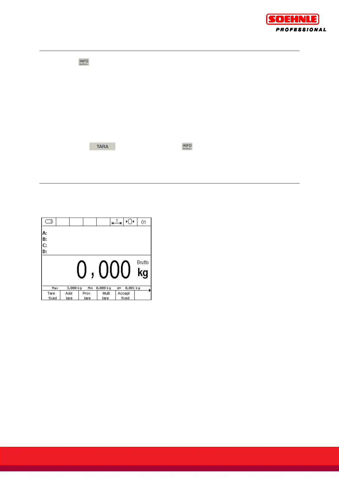 Displays the stored fixed tare values (fixed tare memory).