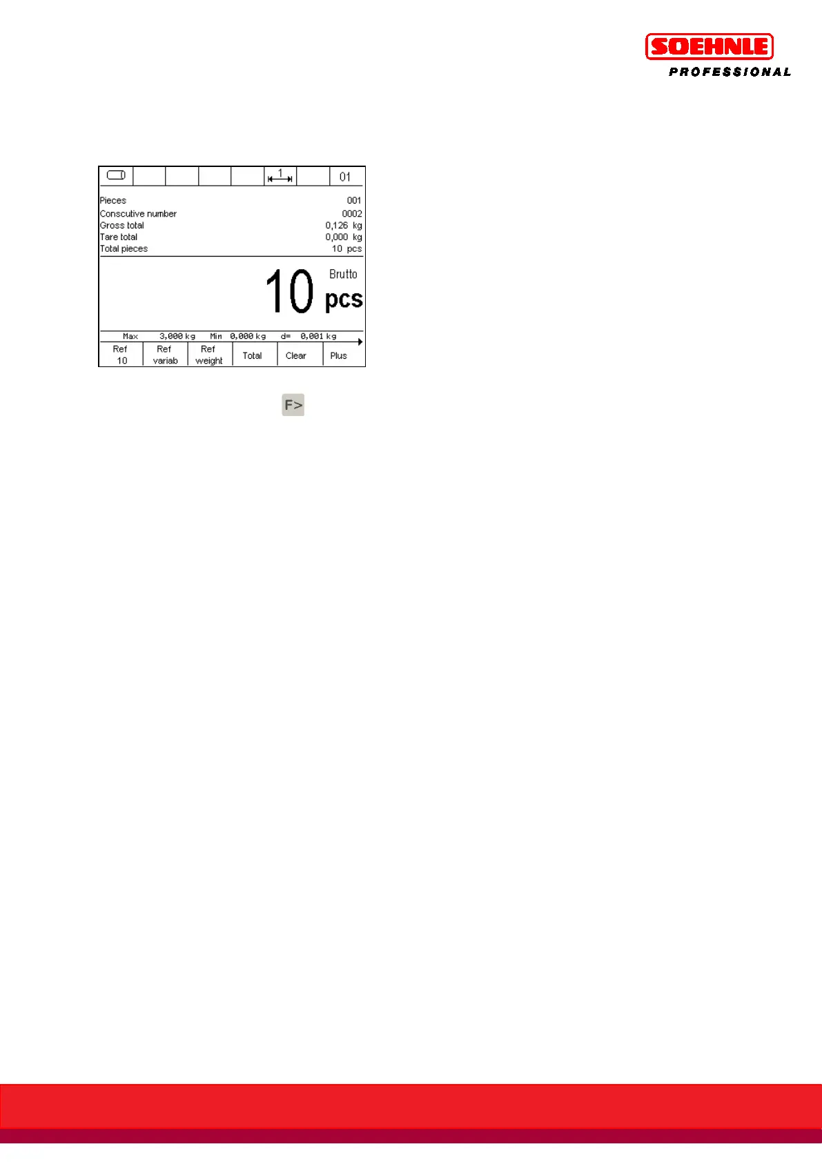 Press the Plus key to save the weight on the weighing bridge to totaling memory. The item