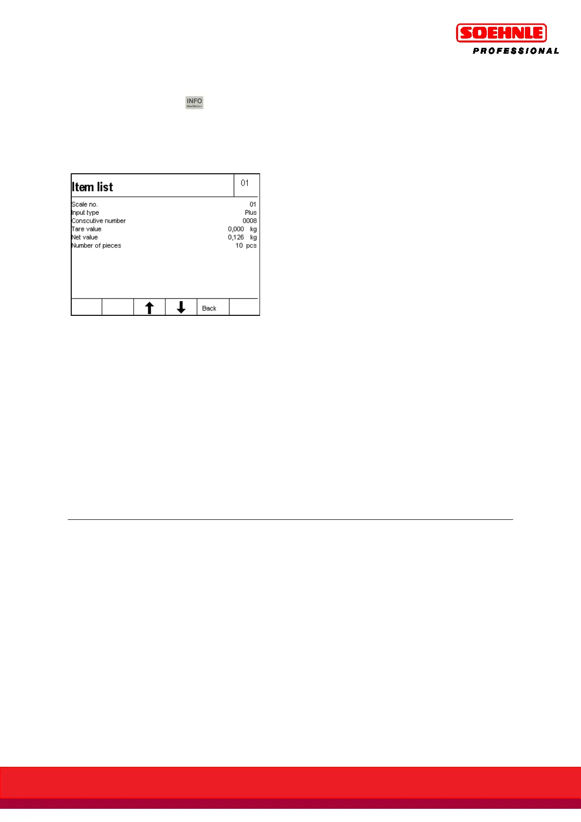 Press the F5 Back key to close the display of the individual items and to return to the previous