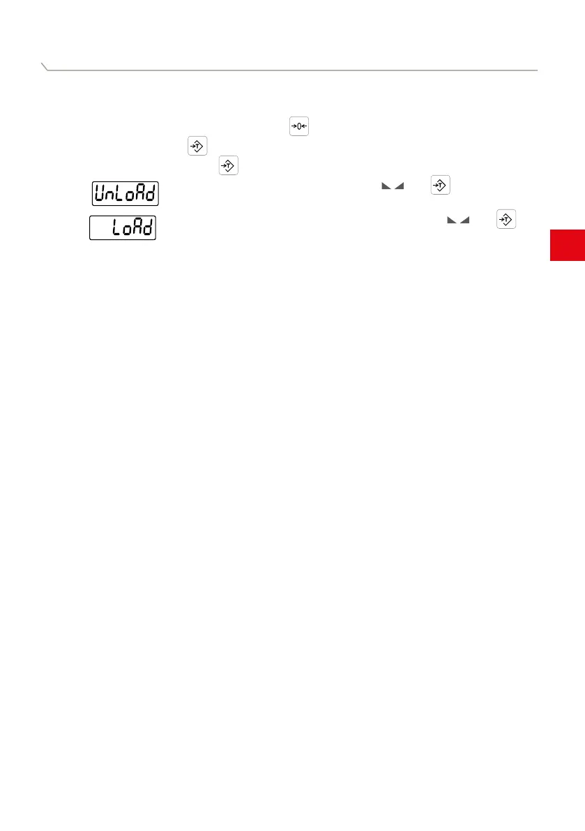 Ijkgewicht op weegplatform plaatsen en bij stilstand (pijl naar ) met