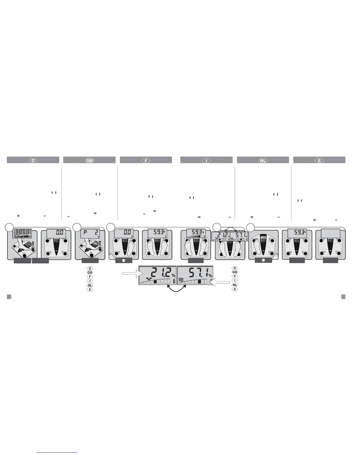 ➄ Weegschaal verlaten. Aanduiding van het lichaamsgewicht.