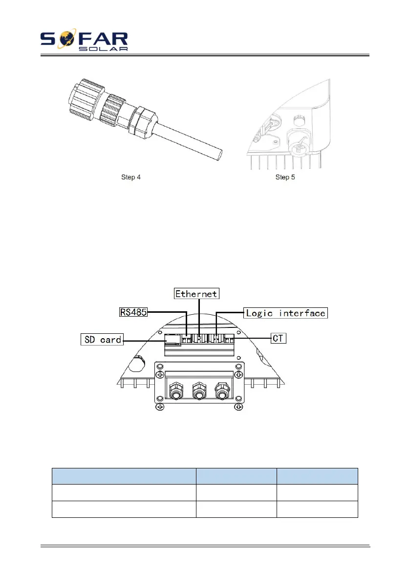 The communication interface location of the SOFAR 1.1K~3KTL is shown in