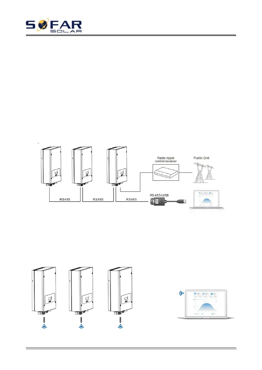 B. Communication between multiple inverters and one PC: