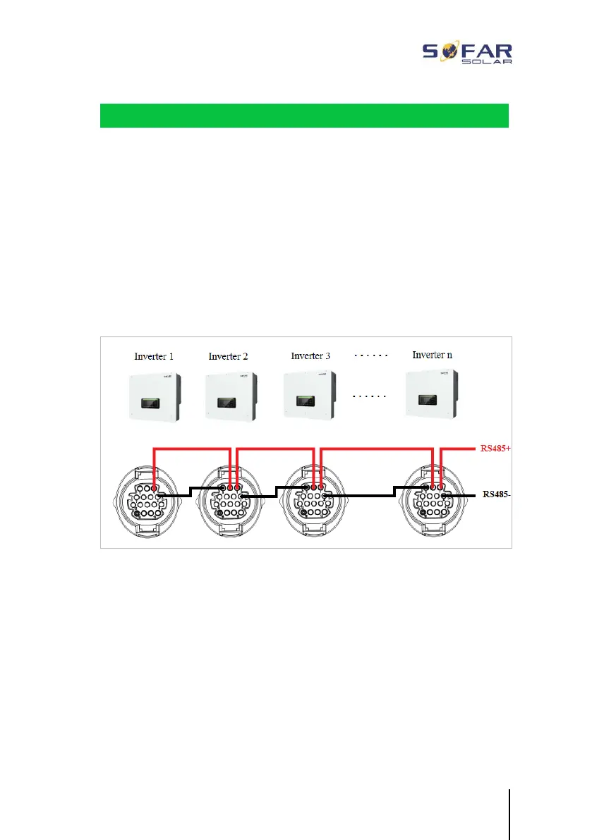 At the last inverter, you need to terminate the bus with an 120 Ohm