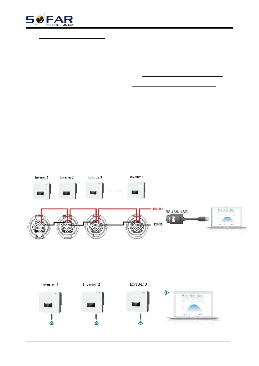 RS485 wires are connected in parallel between inverters, Connect the RS485+