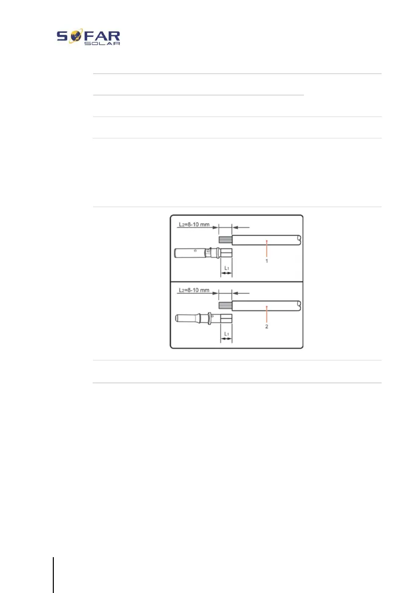 4. Crimp the DC cables. The crimped cable must be able to withstand