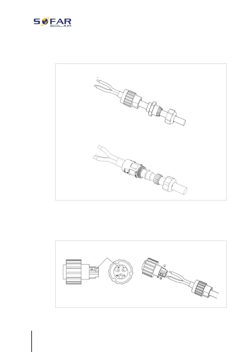 illustration: guide the AC output cable through the cable gland;