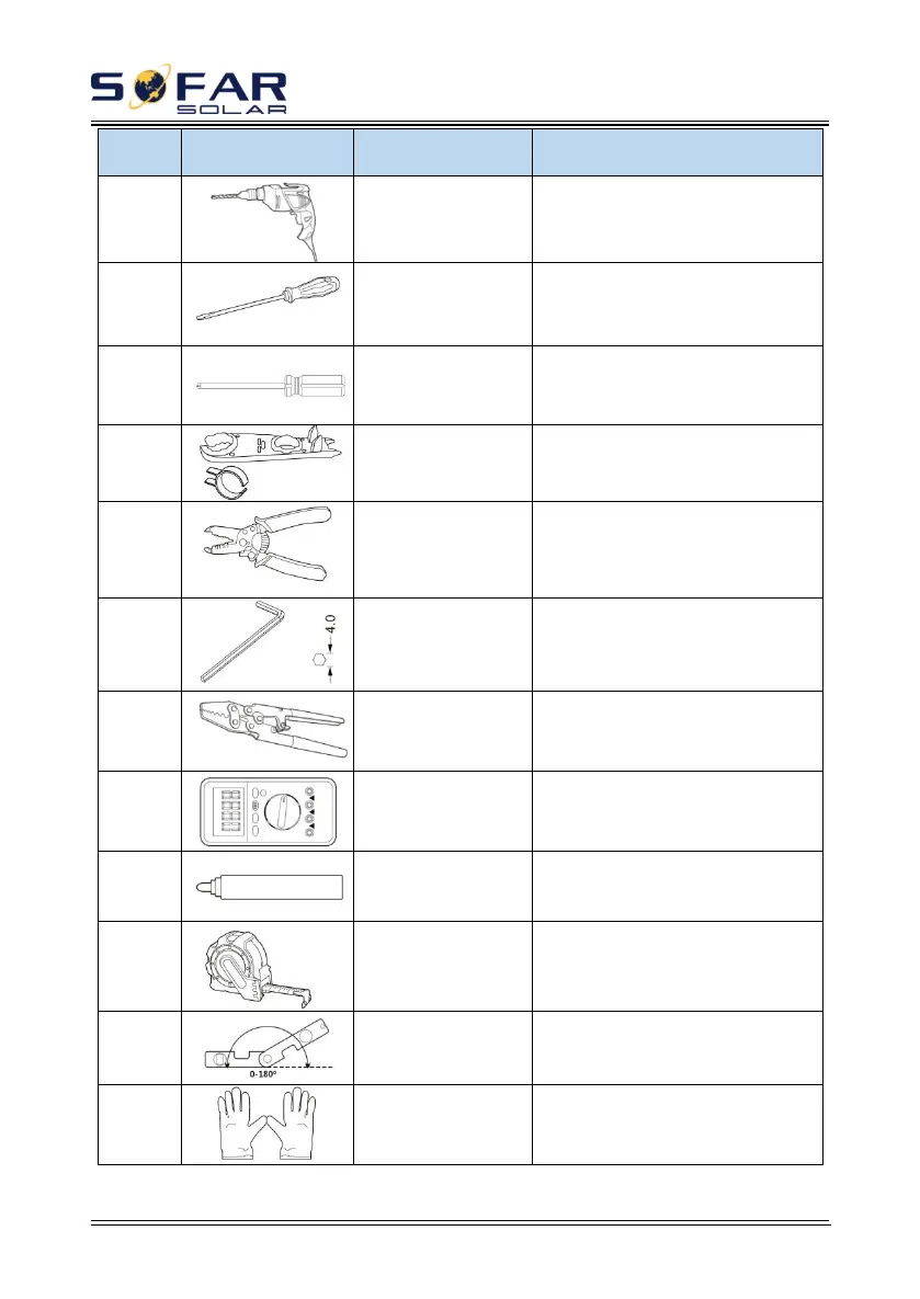 Sofarsolar SOFAR 1600TL-G3 - Required Tools