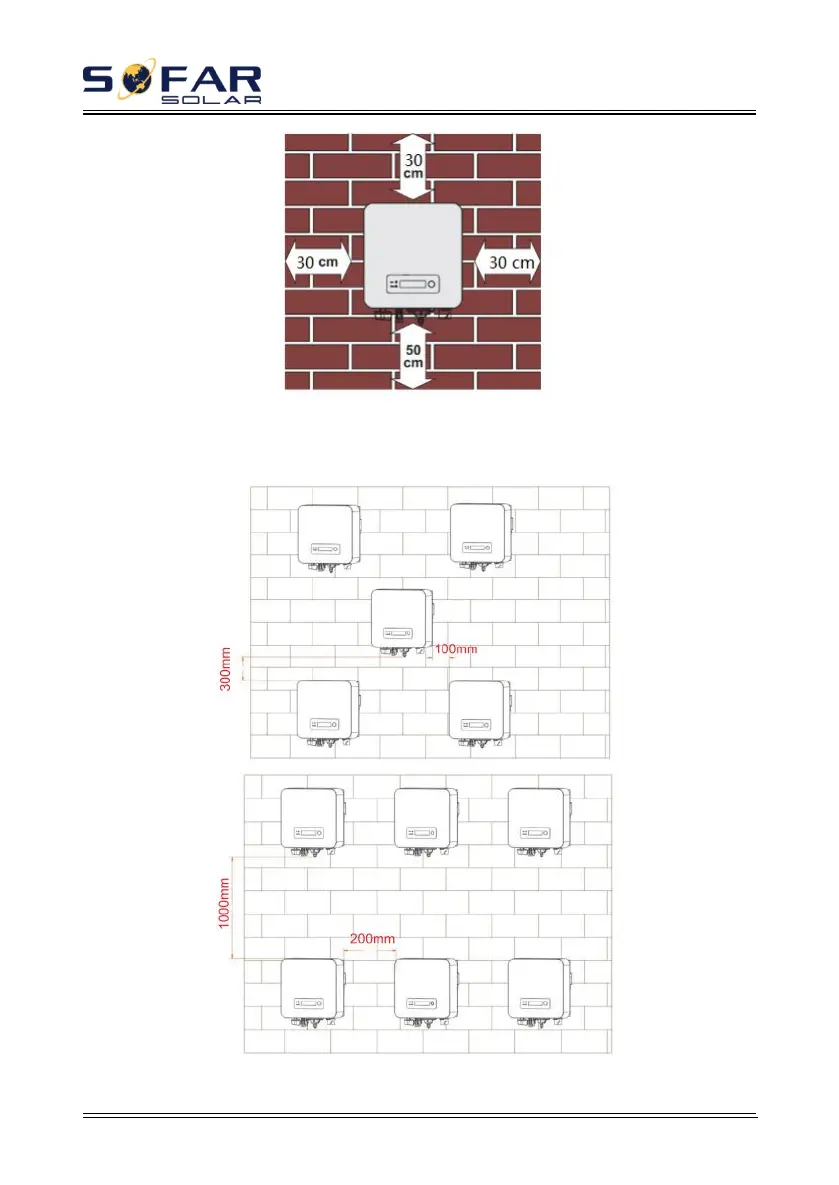 clearance for single SOFAR 1.1K~3.3KTL-G3 Inverter