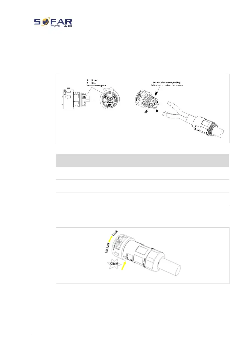 3. Connect the AC output cable in accordance with the following