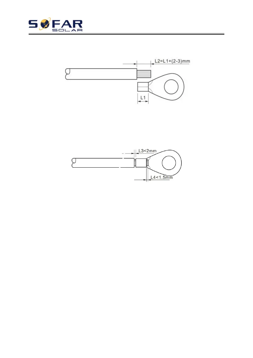 Note 1: L3 is the length between the insulation layer of the ground cable and the crimped