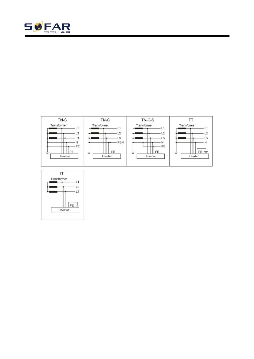 Inverters are compatible with TN-S, TN-C, TN-C-S, TT, IT grid.