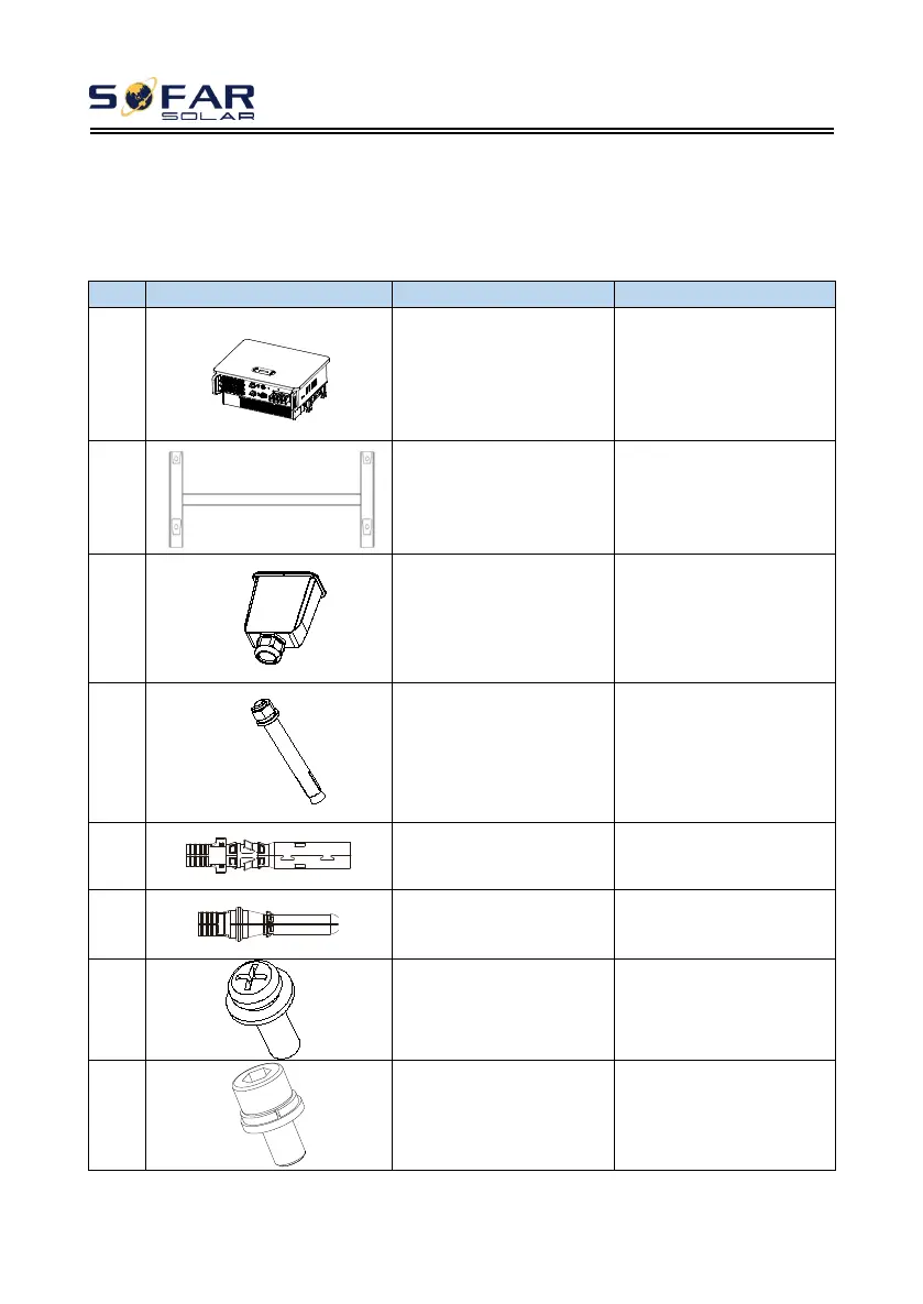 After unpacking, please check according to following table, to see whether all the
