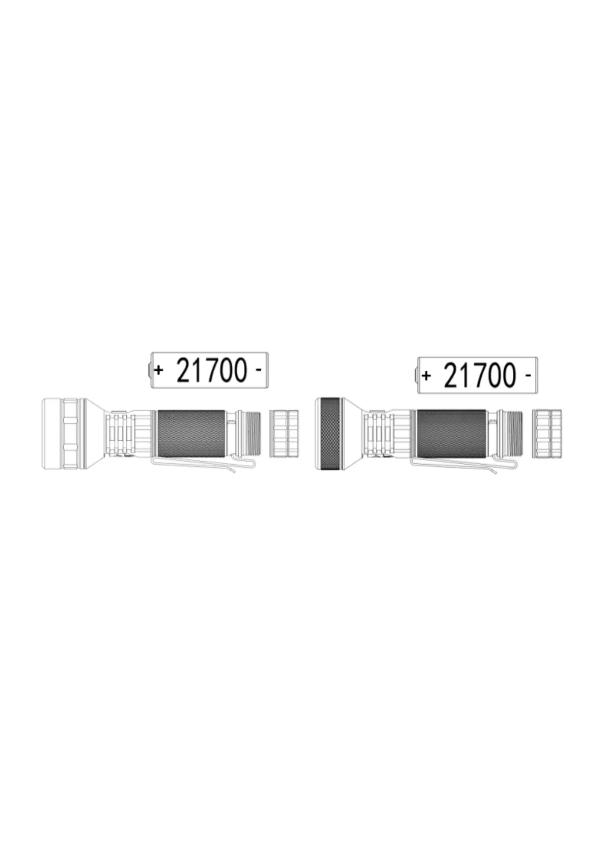 pole (if battery is supplied with the flashlight). Reinsert the battery with the anode side (+) towards the head,