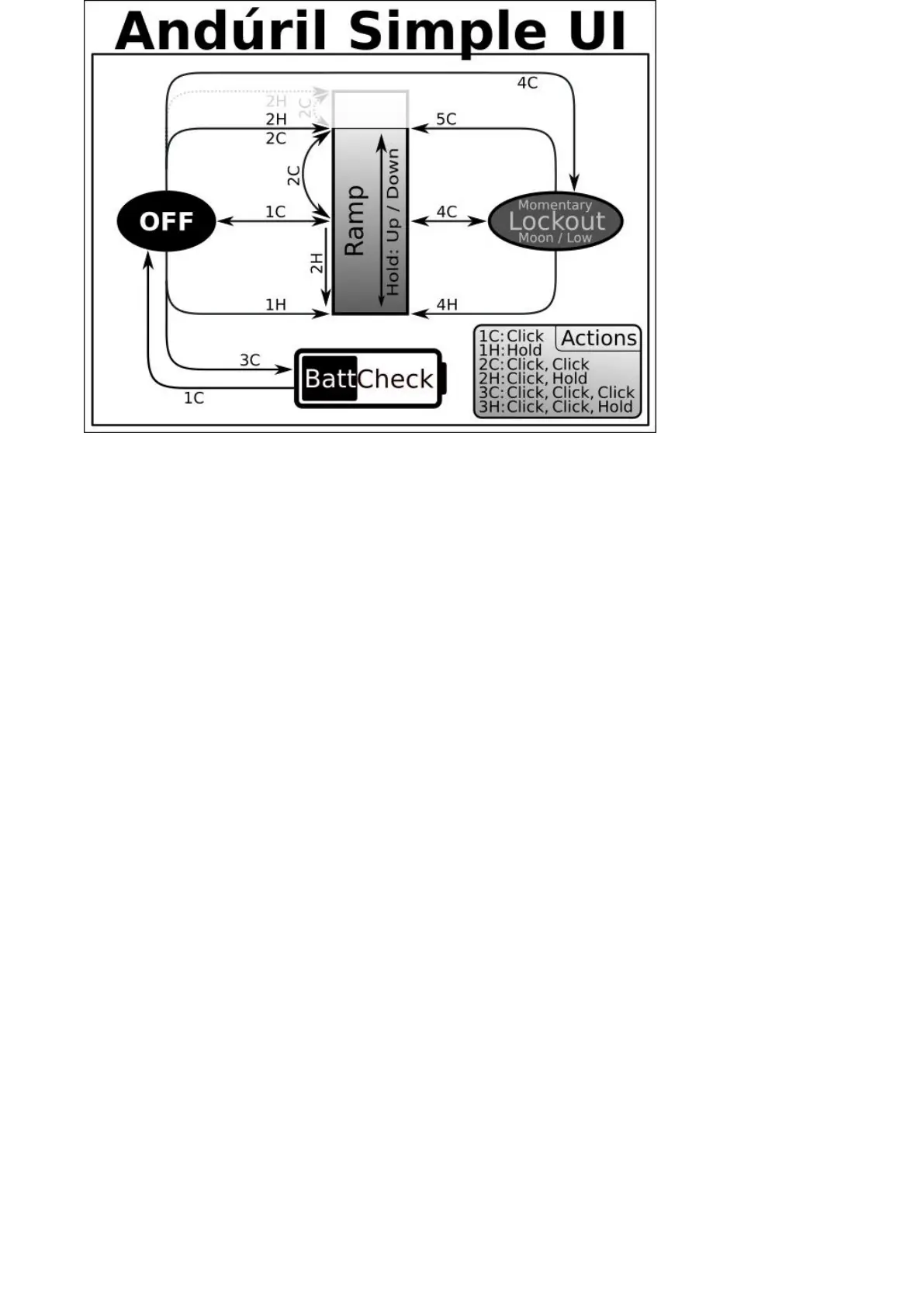 Bevor Sie den Rest dieser Anleitung lesen, sollten Sie sich das Diagramm der Bedienung von Anduril2 ansehen,