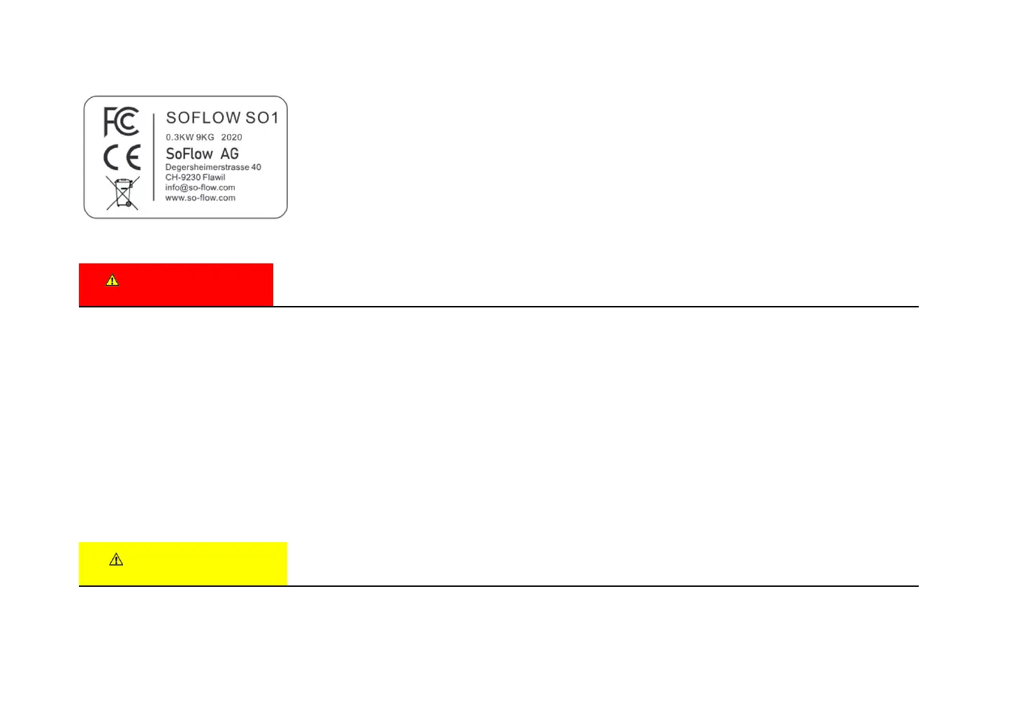 Återförsäljaren eller företaget So-Flow tar inte ansvar för materiella förluster eller skador, personskador eller juridiska tvister som har uppstått på grund av underlåtenhet att beakta informationen