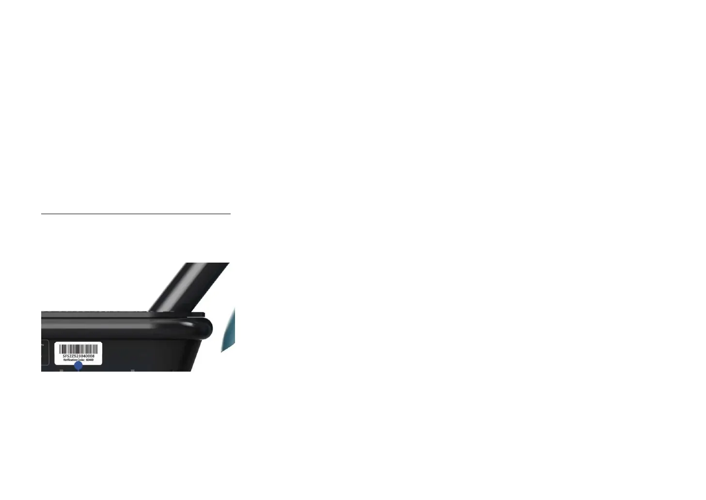 Pour des raisons de sécurité, retirez l'autocollant du code-barres "App Verification Code" illustré ici (situé sous le pied de lit) et conservez-le en