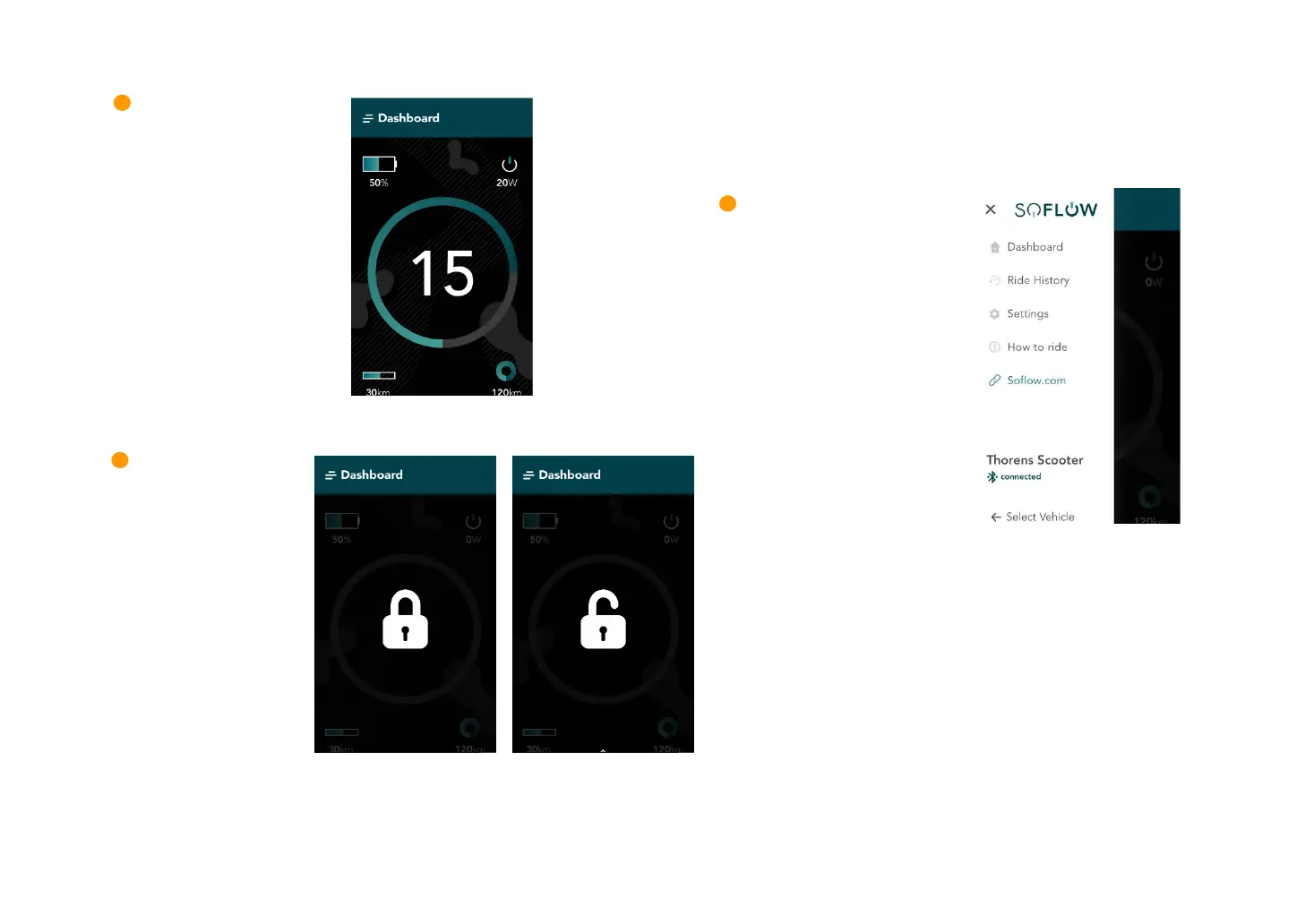 Merk: Når du låser sparkesykkelen, blir den værende i hvilemodus og fortsetter å bruke strøm. Du kan slå av sparkesykkelen for å redusere