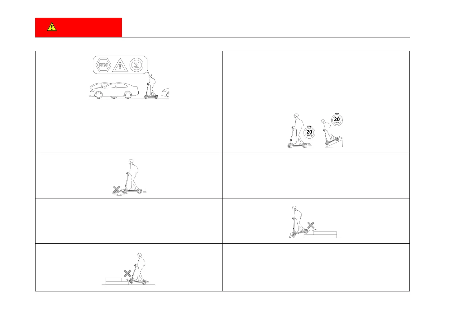 Never drive faster than 20 km/h, also when driving downhill!