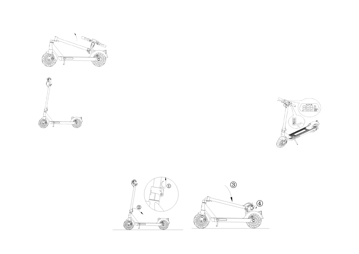 Innan du fäller ihop SO4/SO4 PRO, se till att den är avstängd. Tryck på fästet som på bilden och fäll ner spaken. Fäll ner styrstången till den bakre stänkskärmen och lås