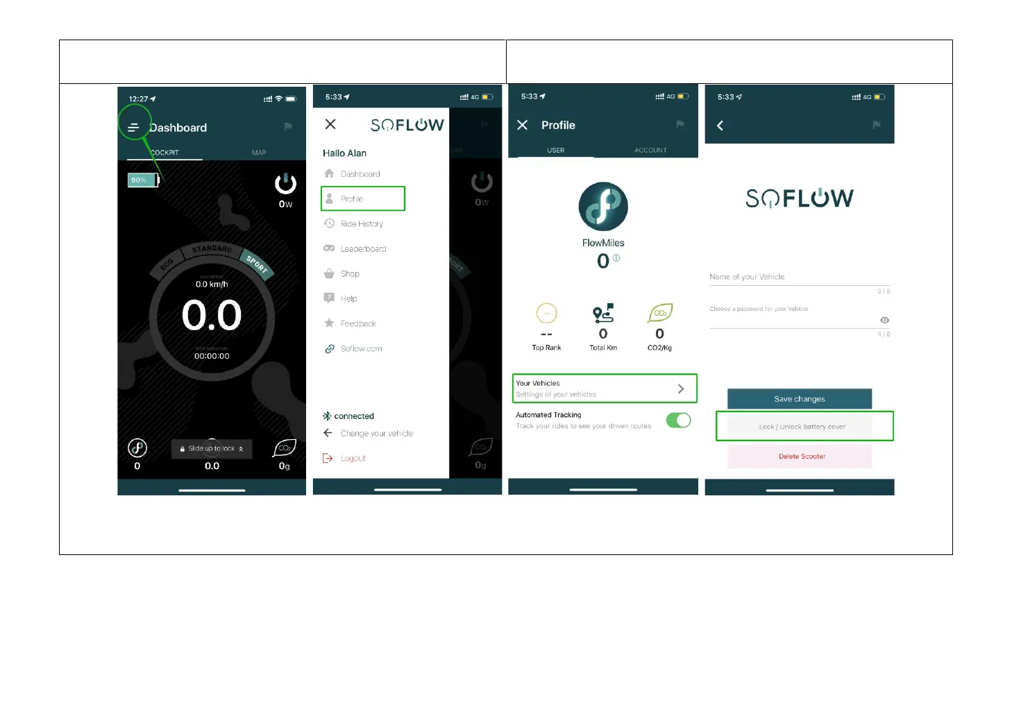 Open dashboard. Ga naar profiel. Open uw voertuig en u ziet de knop voor het vergrendelen/ontgrendelen van de batterijklep. Voor details zie de foto's