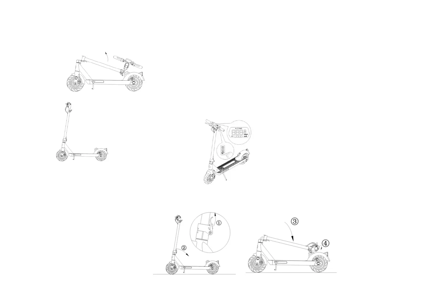 Before folding the SO4 / SO4 PRO, make sure that the scooter is switched off. Press the buckle as shown in the illustration and pull the lever down. Fold the front bar down to the rear