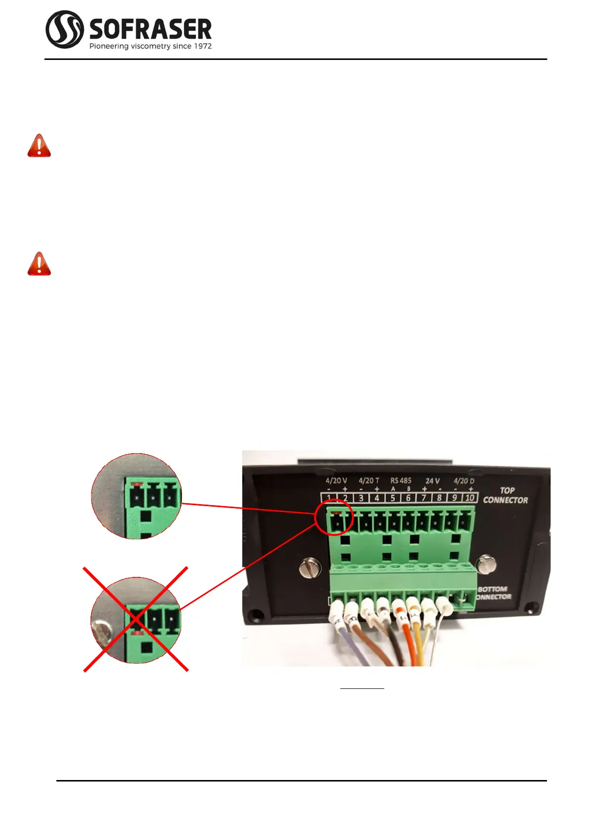 To ensure the proper behavior of the two 4-20 mA current outputs, it is highly recommended to