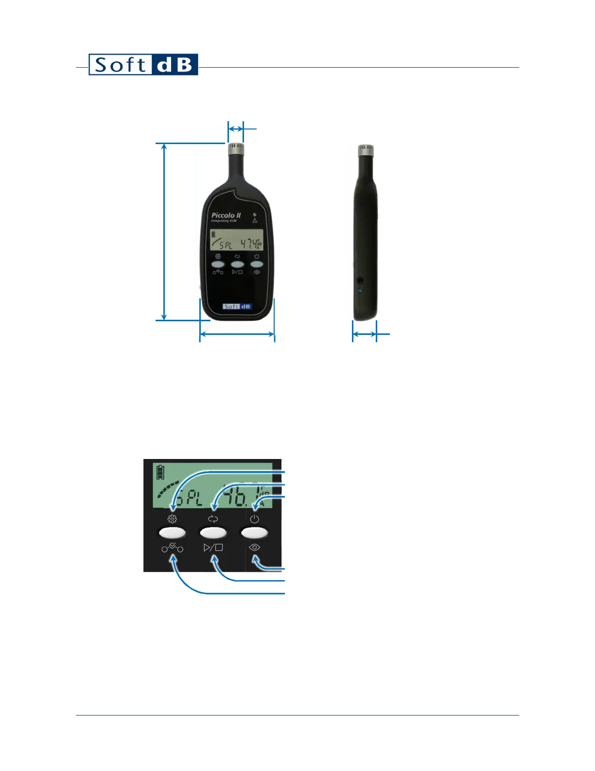 There are 3 buttons on the Piccolo-II to control the instrument. Icons displayed above each button