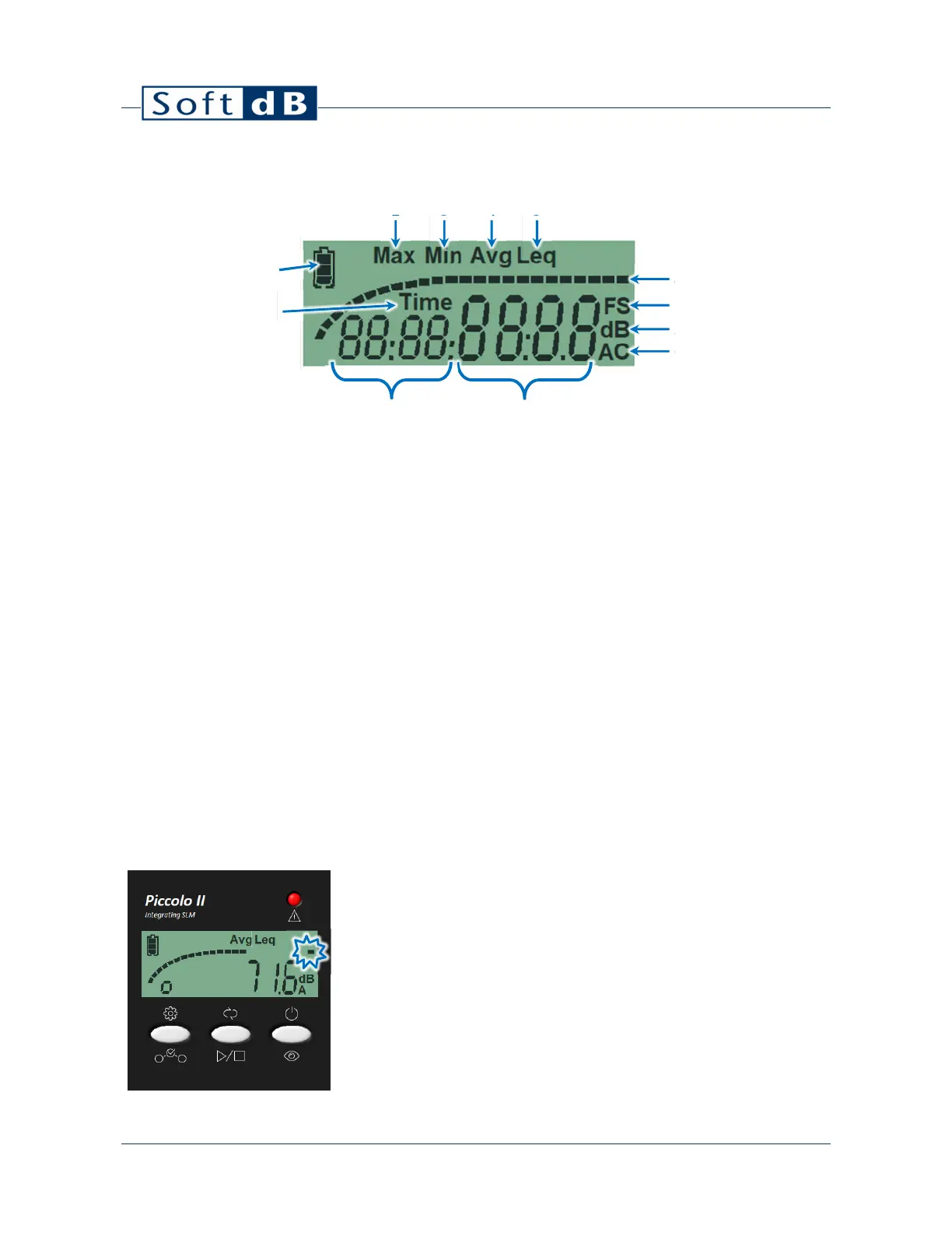 11) Additional Label: SPL, SEL, PEA (Lpeak), rEC (Record number), bAtt (Battery);